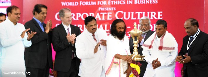 (The Federation of the Karnataka Chamber of Commerce and Industries (FKCCI) and The Art of Living in association with World Forum for Ethics in Business hosted the Corporate Culture and Spirituality Conference at The Art of Living International Centre, Bangalore, on the 8th & 9th of February 2013. Below is a transcript of what Gurudev said on the opening day of the conference...)
