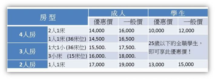 費用:優惠價於7/10前截止(需於此日期以前全額繳清)
