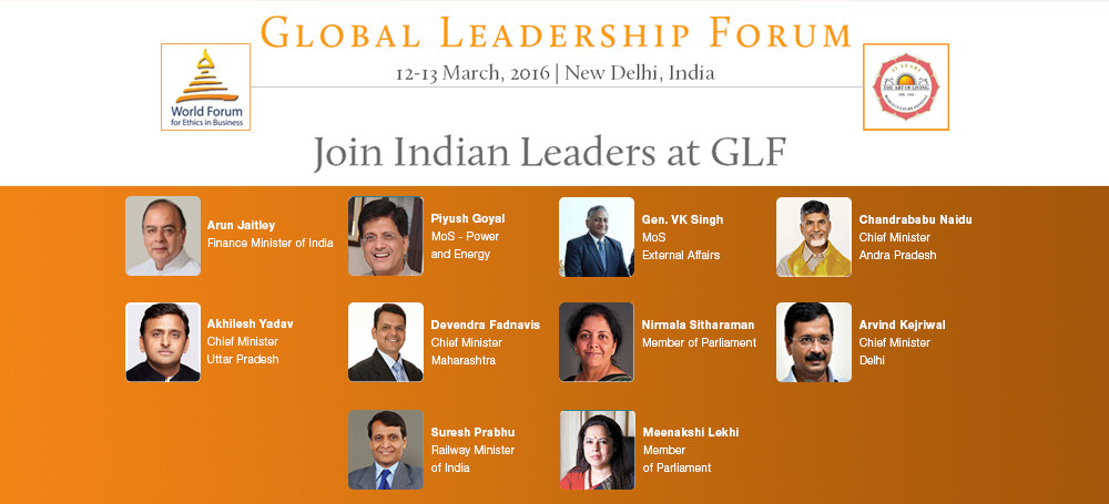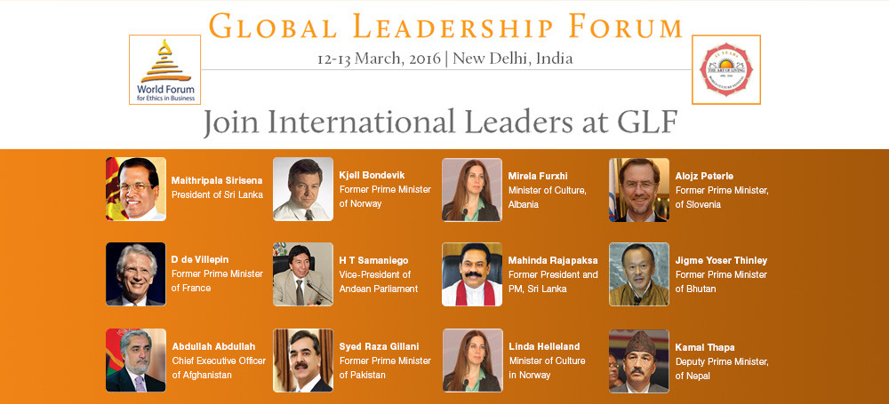 The Global Leadership Forum, co-hosted by the World Forum of Ethics in Business and The Art of Living Foundation in New Delhi on the 12th and 13th March 2016 at the Kempinski Ambience Hotel, features renowned leaders and exceptional entrepreneurial personalities from a diverse range of industries to discuss, analyze and reflect on our current paradigms of leadership. Held under the aegis of the World Culture Festival, the Global Leadership Forum seeks to explore how leadership strategies can be better adapted to meet the needs of our current globalizing and interconnected geopolitical and socio-economic landscape under themed discussion panels.