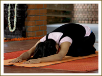 Sentate sobre tus talones. Manteniendo la cintura sobre ellos, inclinate hacia adelante y abajo llevando la cabeza al suelo.