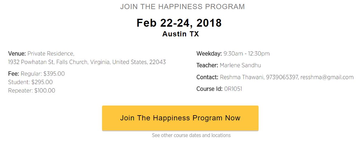 There are now over 700 Happiness Program instructors around the US, most of whom volunteer their time to lead these programs. So you can join a course in over 200 locations, and quite possibly, right in your neighborhood.