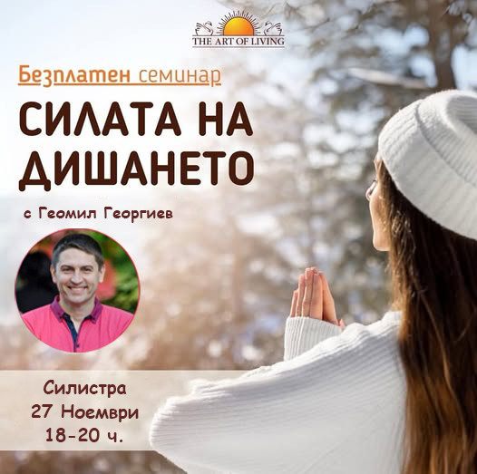 Ела и научи Тайната на Дишането!  Научи как функционира нашият ум и кои негови тенденции ни карат да изпитваме стрес и ни правят нещастни и как дишането е в основата на нашето щастие.Заповядай на  семинарът  "Силата на дишането" в Силистра!