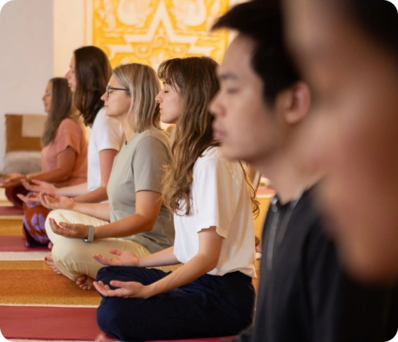 The Sudarshan Kriya™ is a powerful breathing technique that uses specific rhythms to cleanse the body of accumulated stress and tension on a cellular level, fostering greater mental clarity and calmness.