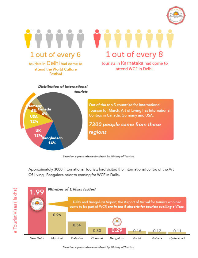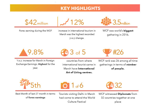 आर्ट ऑफ लिविंग के द्वारा आयोजित विश्व सांस्कृतिक महोत्सव ने 155 देशों से कलाकारों को एक मंच पर एकत्रित कर न केवन महान सांस्कृतिक प्रभाव डाला बल्कि अगोचर प्रभाव भी सम्पूर्ण विश्व पर पड़ा। इस रिपोर्ट में बृहद व आंतरिक दोनों तरह का शोध किया गया है। विभिन्न सरकारी विभागों( पर्यटन विभाग, आर्थिक मामलों के विभाग) द्वारा उपलब्ध निर्दिष्ट सामग्री का विवेचन इस कार्यक्रम के प्रभाव को समझने के लिए किया गया।