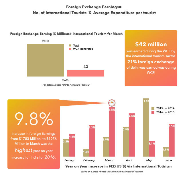 - मार्च में प्रति 6 में से 1 पर्यटक दिल्ली में WCF में भाग लेने के लिए आया।