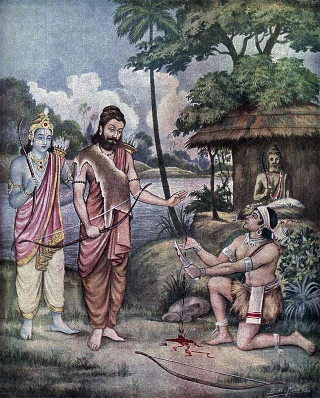 ஏகலைவன் துரோணாச்சார்யாரிடமிருந்து வில்வித்தை கற்று கொள்ள வேண்டும் என்று விரும்பினான். ஆனால் அவர் நிராகரித்து விட்டார். இதனால் மனம் தளராத ஏகலைவன், மண்ணால் துரோணாச்சார்யாரின் சிலையை வடிவமைத்து அதையே குருவாகக் கருதினான். சீரான பயிற்சி மற்றும் பக்தியால் வில்வித்தை கற்று, துரோணாச்சார்யாரின் விருப்பத்திற்குரிய சீடனான அர்ஜுனனையும் விட சிறந்தவனாக விளங்கினான். துரோணாச்சாரியார் குருதக்ஷிணை கேட்டபோது தன்னுடைய கட்டை விரலையே சற்றும் தயக்கமின்றி அளித்தான்.