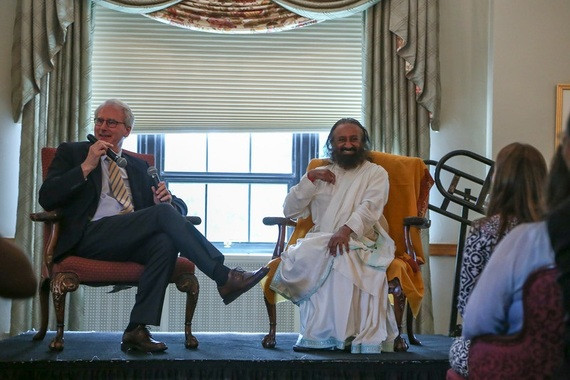 In March of this year, when I attended the World Culture Festival in India, and was afforded the chance to invite Gurudev Sri Sri Ravi Shankar to come to The Ohio State University and speak with my colleagues about his work, I could hardly imagine he would say yes. Even more surprising is that a humanitarian as busy as he is could fulfill the invitation so soon, arriving only three months after me and my Art of Living Columbus community invited him.