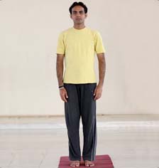 - Stand in a comfortable position, keeping your hands straight by the side of the body